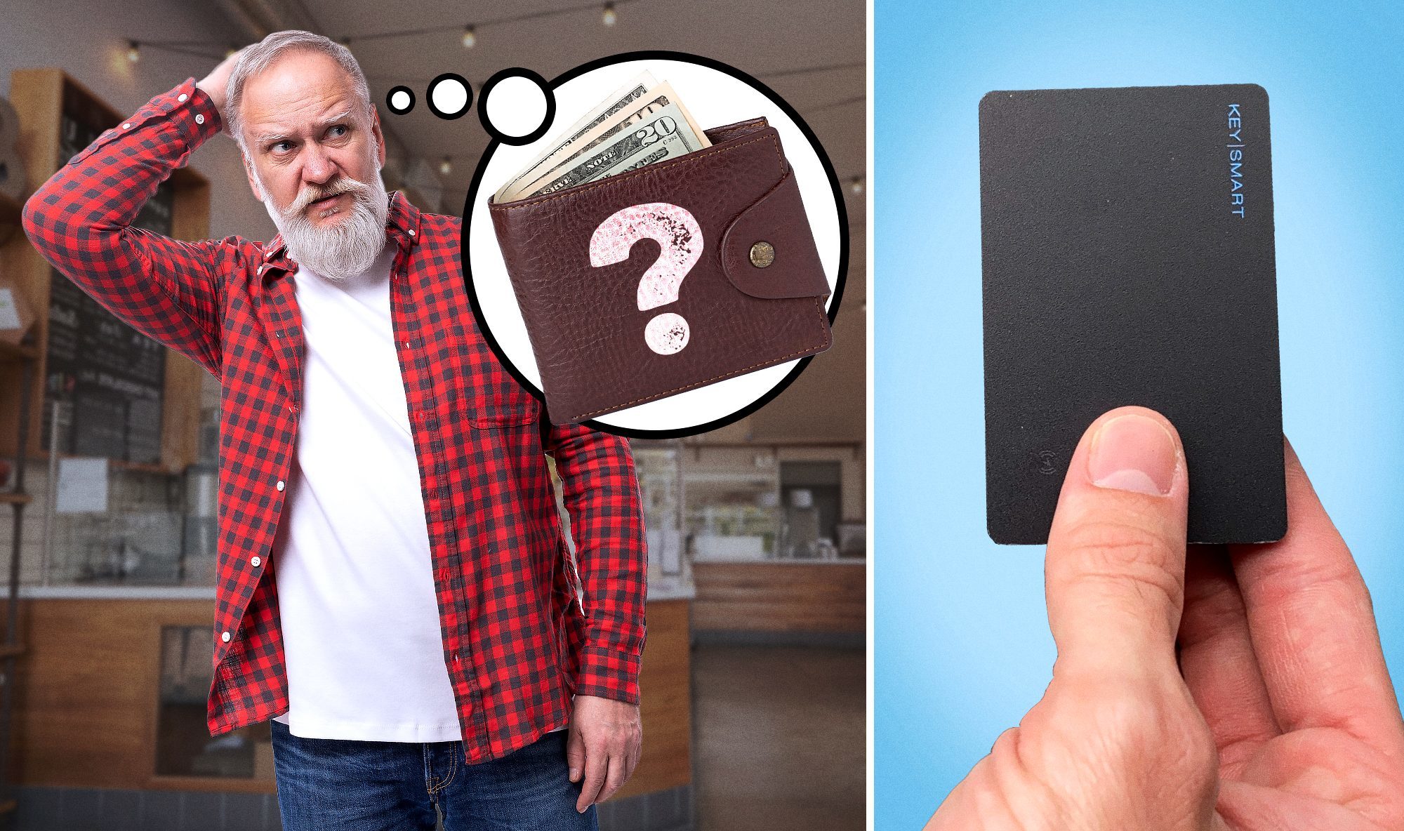 It's a tracker the size of a credit card. Slides right into your wallet or purse. Works with the Apple Find My app so you can locate it anywhere in the world. It's waterproof, lasts 5 months on a single charge, and takes one tap to set up.